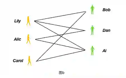 下图 b 是著名的男女配对问题:左侧3名女孩,右侧3名男孩,连线代表他们互相喜欢,如果将互相喜欢的进行两两配对,最多可以配出多少对?