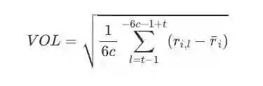 ri拔 是资产i在 (-6c−1+t,t−1)这个时间段内的平均收益率。