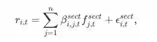 βi,j,tsect 表示t日,第j个sector因子对资产i产生的风险。factor exposure(也称factor loading)指的是因变量和潜在变量之间的关系,如对于资产i,如果第j个sector因子和它没关系,则βi,j,tsect=0;