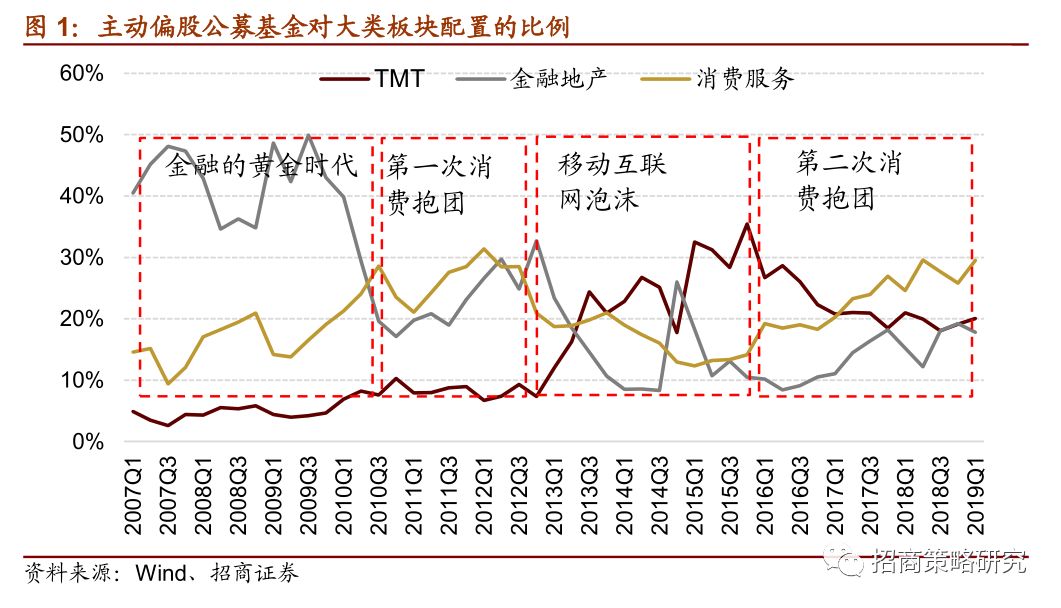 2009年三季度是公募基金对金融板块持仓坚定不移,并使得当时有很多投资者相信:为什么要研究股票,买银行券商就好了啊。但是,这种坚定的信念背后,一股新生的力量开始崛起。并对后来十年的投资产生了深远的影响——那就是以白酒家电为代表的消费。