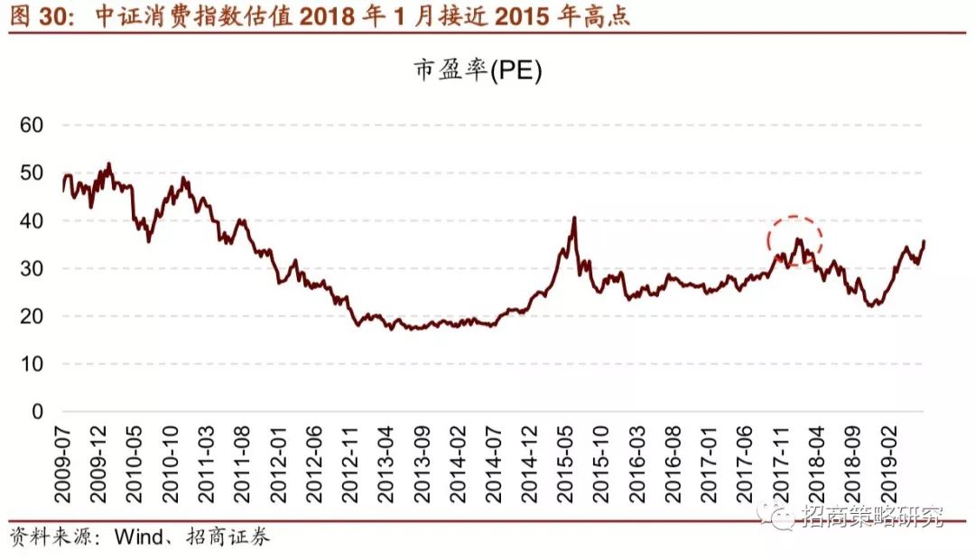 其实事后从估值上看,这个位置消费并不贵,2012年7月12日,中证消费指数估值为26倍。由于业绩优秀,即便股价在持续上涨,但是估值并没有进一步的提升。