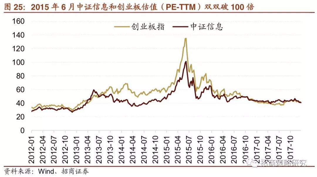 和2007年一样,估值已经给脱离了地心引力,只要估值能够突破原来的区间限制,再给多少倍已经不重要了。所以,当时的中证信息指数和创业板指估值都是夸张的100倍以上。不过奇怪的时,2014年还有人讨论创业板是不是贵了,2015年就没人讨论了。但是,还是得给估值啊,因此,这个时候,最受欢迎的估值方法是对标估值法,就是美国同行业的公司市值是多少,那么这家A股市值只能高不能低。而且当时也是卖方分析师最高光时刻了,推啥涨啥。