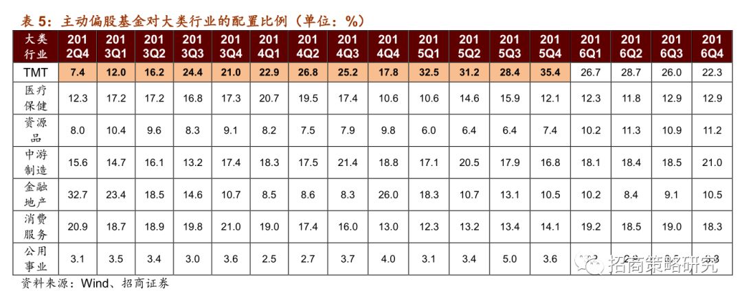 2015年7月开始,A股出现了明显调整并触发了一些风险,政府部门采取了一些稳定措施,调整持续了一个季度,一直到9月底,由于跌幅快速并且巨大,大部分机构投资者都来不及减仓,到了9月底,当市场终于企稳时,大家的第一反应当然是加仓跌幅巨大的信息科技,到2015年四季度,前面还在犹豫不决的投资者抓住了最后的机会,赶紧加仓,公募基金对信息科技板块持仓达到35.43%,创下了历史新高。