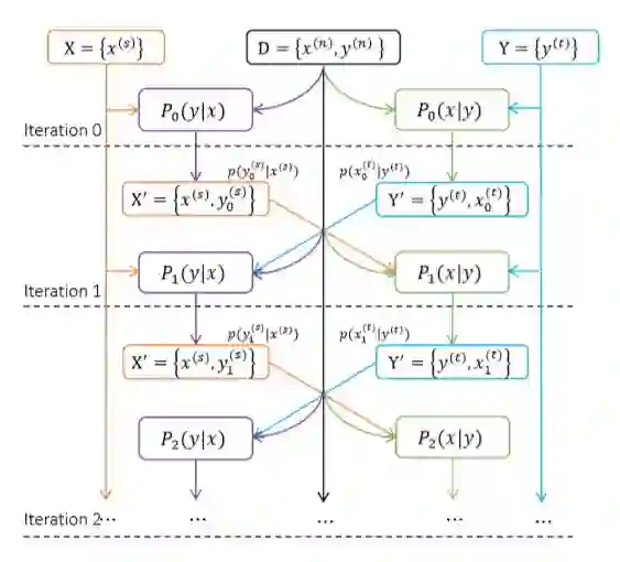 联合训练:从源语言到目标语言翻译(Source to Target)P(y|x) 与从目标语言到源语言翻译(Target to Source)P(x|y)