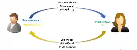 对偶学习(Dual Learning):对偶学习的发现是由于现实中有意义、有实用价值的人工智能任务往往会成对出现,两个任务可以互相反馈,从而训练出更好的深度学习模型。例如,在翻译领域,我们关心从英文翻译到中文,也同样关心从中文翻译回英文;在语音领域,我们既关心语音识别的问题,也关心语音合成的问题;在图像领域,图像识别与图像生成也是成对出现。此外,在对话引擎、搜索引擎等场景中都有对偶任务。