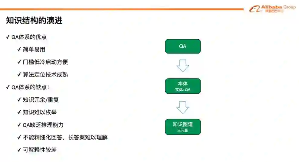 经过在实际业务场景中的探索和实践,我们对知识的结构化及其应用有了比较深入的思考和认知。一方面,知识结构化有不少可观的优点,可以准确回答、支持推理、可解释、可复用等等;与此同时,她也存在其局限性,主要的一点是 Schema 的构建需要业务专家参与而难以规模化。