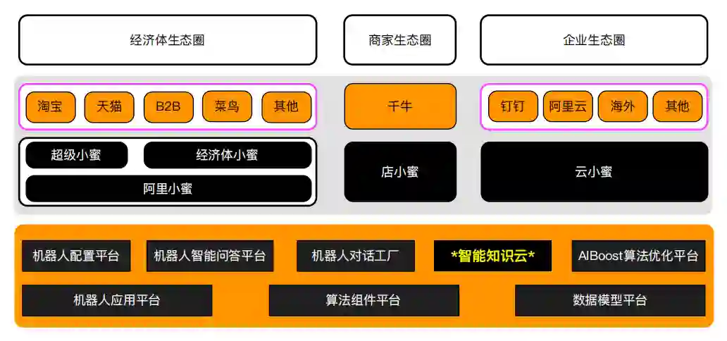 阿里小蜜机器人是一个对话机器人家族体系,不仅是指支持经济体生态的阿里小蜜,还包括了支持商家生态的店小蜜以及支持企业生态的云小蜜。在机器人的底座,是一套体系化的支撑平台,涵盖机器人的开发、配置、训练和知识等重要方面。其中,本文主要介绍的知识云是阿里小蜜的新一代知识库系统,支持基于词组、FAQ、知识图谱、机器阅读文档在内的丰富的知识体系,为阿里小蜜提供高效可靠的知识服务。