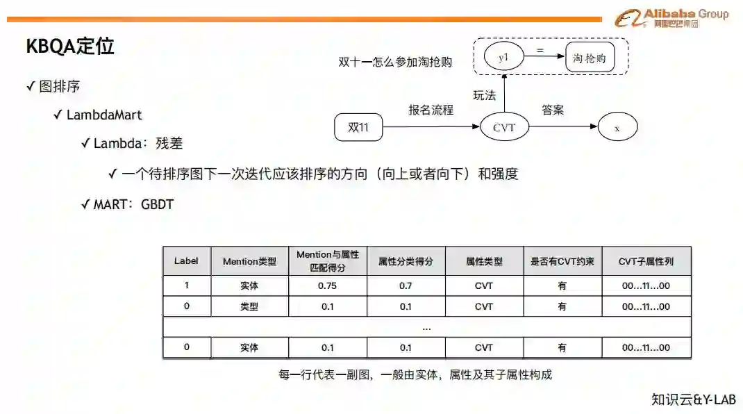 在识别出来实体、属性、约束的候选之后,我们会把相应的候选组合成一幅候选图。例如,上图右上角就对应了用户问题 "双十一怎么参加淘抢购" 的一个候选图。需要注意的是,因为实体、属性、约束都可能存在多个候选,所以这幅图仅仅是是多幅候选图中的一幅。