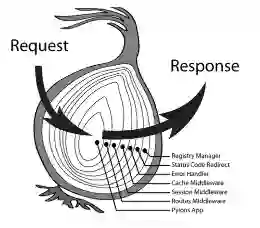 如果开发过Express、Koa或者Redux, 你可能会发现中间件模式和上述的管道模式有一定的相似性,如上图。相比管道,中间件模式可以使用一个洋葱剖面来形容。但和管道相比,一般的中间件实现有以下特点: