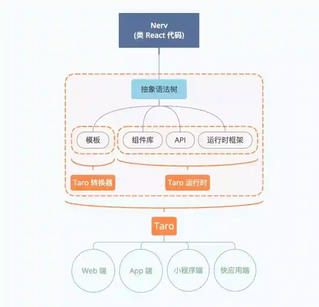 Taro 和React一样也采用分层架构风格,只不过他们解决的问题是相反的。React加上一个分层,可以渲染到不同的视图形态;而Taro则是为了统一多样的视图形态: 国内现如今市面上端的形态多种多样,Web、React-Native、微信小程序…… 针对不同的端去编写多套代码的成本非常高,这种需求催生了Taro这类框架的诞生. 使用 Taro,我们可以只书写一套代码, 通过编译工具可以输出到不同的端: