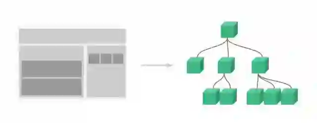 怎么解决,再加一层吧,后来React就搞了一层VirtualDOM。我们可以声明式、组合式地构建一颗对象树, 然后交由React将它映射到DOM: