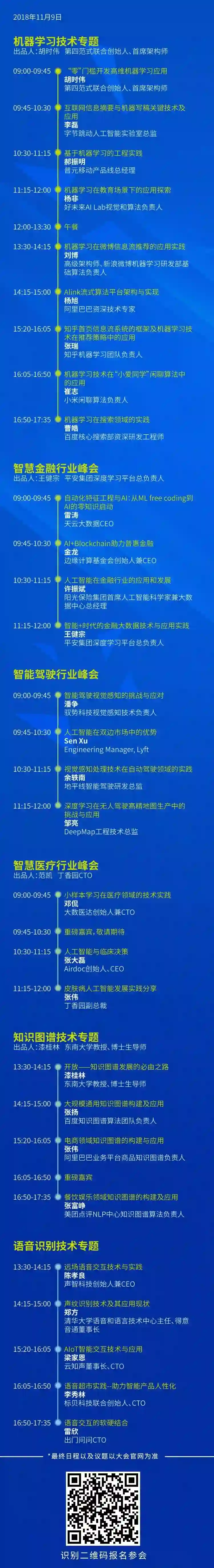 除了语音技术专题之外,我们还为大家准备了“自然语言处理”、“机器学习工具”、“数据分析”、“机器学习”、“计算机视觉”、“知识图谱”等技术专题,以及“智慧金融”、“智能驾驶”、“智慧医疗”等行业峰会。大会完整日程以及嘉宾议题请查看下方海报。
