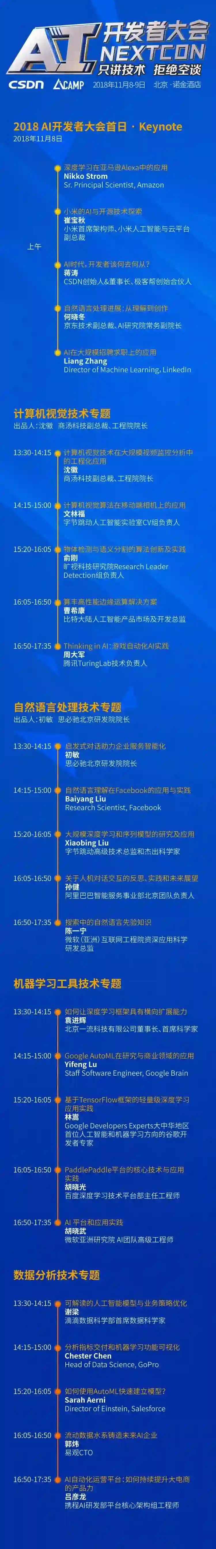 2018 年 11 月 8-9 日,由中国 IT 社区 CSDN 与硅谷 AI 社区 AICamp 联合出品的 2018 AI 开发者大会(AI NEXTCon)将于北京召开。