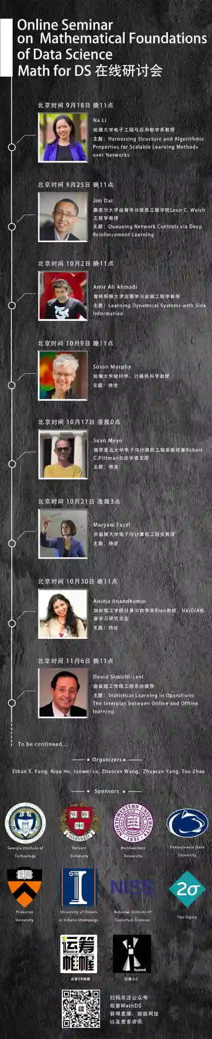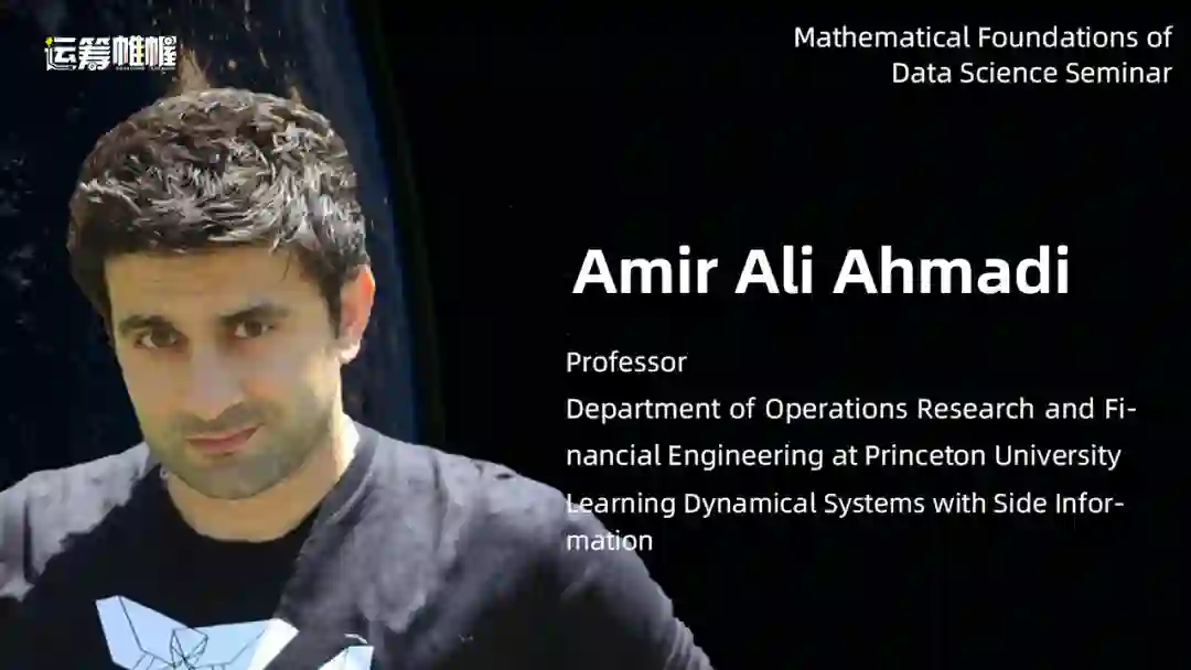 Online Seminar on Mathematical Foundations of Data Science (Math for DS) [1]是在线的、每周举办的系列研讨会。研讨会旨在讨论数据科学、机器学习、统计以及优化背后的数学原理,邀请了北美诸多知名学者进行主题演讲。『运筹 OR 帷幄』和『机器之心』作为合作媒体,将在 B 站发布往期的回放视频。本期,受邀嘉宾将为我们带来主题为 「Learning Dynamical Systems with Side Information」 的演讲。 Online Seminar on Mathematical Foundations of Data Science(Math4DS)是在线的、每周举办的系列研讨会,其内容涵盖数据科学、机器学习、统计以及优化背后的数学基础。 在线研讨会将在 Zoom 上进行,链接如下:https://psu.zoom.us/s/95512102924 有关研讨会的公告可通过点击阅读原文,链接到国内镜像网址获得。 此外,『运筹 OR 帷幄』公众号平台会及时预告研讨会的最新消息,敬请关注! 研讨会邀请到诸多知名学者进行主题演讲,目前受邀参加的有: Math for DS 第二十二期线上直播预告 主题:Learning Dynamical Systems with Side Information嘉宾:Amir Ali Ahmadi时间:北京时间 10 月 2 日晚 11 点地点:Zoom 主题介绍 We present a mathematical and computational framework for the problem of learning a dynamical system from noisy observations of a few trajectories and subject to side information. Side information is any knowledge we might have about the dynamical system we would like to learn besides trajectory data. It is typically inferred from domain-specific knowledge or basic principles of a scientific discipline. We are interested in explicitly integrating side information into the learning process in order to compensate for scarcity of trajectory observations. We identify six types of side information that arise naturally in many applications and lead to convex constraints in the learning problem. First, we show that when our model for the unknown dynamical system is parameterized as a polynomial, one can impose our side information constraints computationally via semidefinite programming. We then demonstrate the added value of side information for learning the dynamics of basic models in physics and cell biology, as well as for learning and controlling the dynamics of a model in epidemiology. Finally, we study how well polynomial dynamical systems can approximate continuously-differentiable ones while satisfying side information (either exactly or approximately). Our overall learning methodology combines ideas from convex optimization, real algebra, dynamical systems, and functional approximation theory, and can potentially lead to new synergies between these areas. Based on joint work with Bachir El Khadir. 嘉宾介绍 Amir Ali Ahmadi,普林斯顿大学运筹学与金融工程系教授,应用与计算数学专业、计算机科学系、机械与航空航天工程系、电子工程系、统计与机器学习中心助理教员。Amir Ali 从麻省理工学院获得了电子工程与计算机科学博士学位,在加入普林斯顿大学之前,他是 IBM Watson 研究中心的 Goldstine 研究员。 他的研究兴趣是优化理论,动力学和控制的计算以及算法和复杂度。 如何观看 B 站录播? 受北美教授的时间限制,Math4DS 每期研讨会时间大多设置在美东时间周二的下午三点,即北京时间周三的凌晨三点。这对于国内的观众非常不友好,但是『运筹 OR 帷幄』也在 B 站提供了每期的录播,错过直播的小伙伴和想要回顾的小伙伴可以在前往 B 站观看,小编也会在第一时间上传最新的研讨会视频。 B 站官方号:运筹 OR 帷幄https://space.bilibili.com/403058474 研讨会主办方简介 组织者:Ethan X. Fang, Niao He, Junwei Lu, Zhaoran Wang, Zhuoran Yang, Tuo Zhao 赞助方: 参考文献[1]https://sites.google.com/view/seminarmathdatascience/home 相关文章推荐 北美 Math4DS 第十七期线上直播由哈佛大学流行病学系、生物统计学系教授 James Robins 进行主题演讲,『运筹 OR 帷幄』和『机器之心』作为官方合作媒体,在前者 B 站为大家带来回放。了解『运筹 OR 帷幄』更多直播信息,欢迎关注我们的官方知乎和 B 站机构号:运筹 OR 帷幄。 点击蓝字标题,即可阅读 Math4DS 第十七期直播预告《Math4DS 直播 NO.17 | 哈佛大学流行病学系、生物统计学系教授 James Robins》