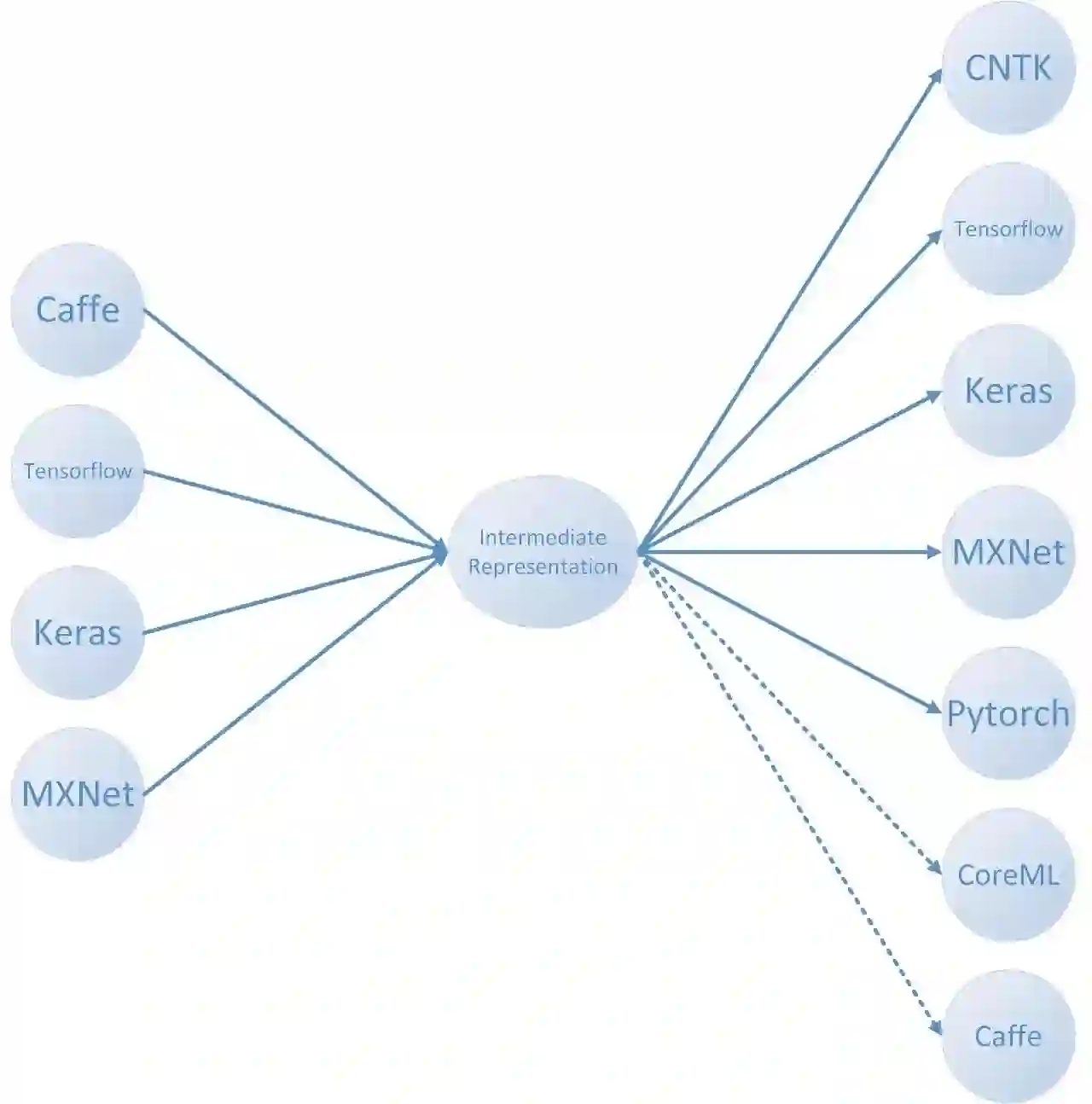 为此,我们提供了一个这样的模型转换器,来帮助开发人员通过中间表示格式在不同框架之间实现模型的转换。