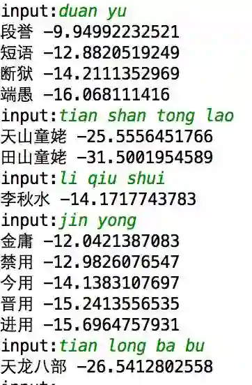 运行input_method/viterbi.py文件,简单的展示一下运行结果: