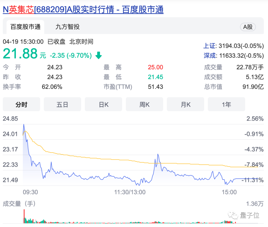 开盘后,英集芯股价短暂上涨,最高股价为25元/股。