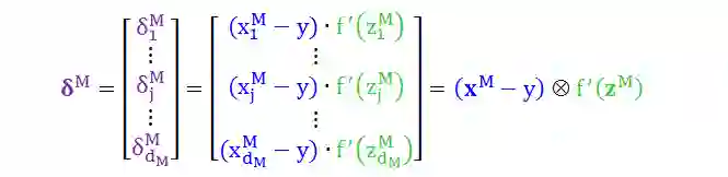 由于这个迭代关系是从后往前递推,因此需要一个最终条件 δjM (j = 1,2, …, dM),称为公式 5