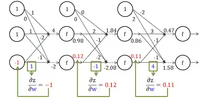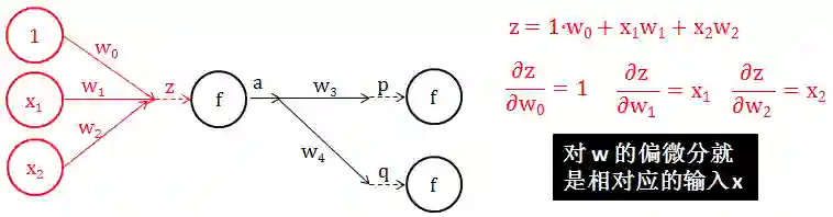 从 b 开始正向往上计算所有节点上的变量对 b 的导数,该操作叫做正向微分 (forward-mode differentiation)