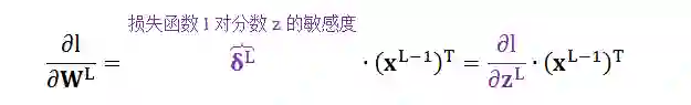 ∂l/∂a 是前一层的 l 对分数 z 的偏导数