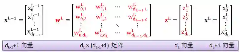 权重 wL 的上标为L,表示这它从上一层 (L-1层) 来,并走向下一层 (L 层)