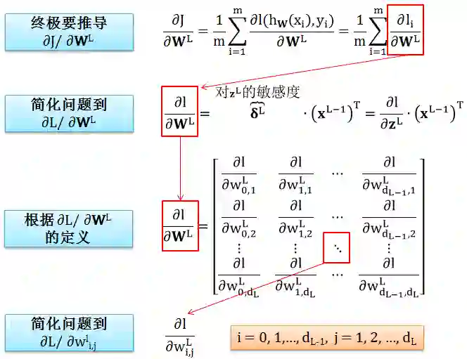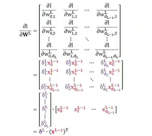 由于 ∂l/∂WL 是矩阵,将其进一步拆分成 ∂l/∂wLi,j。即一个纯量权重 wLi,j。