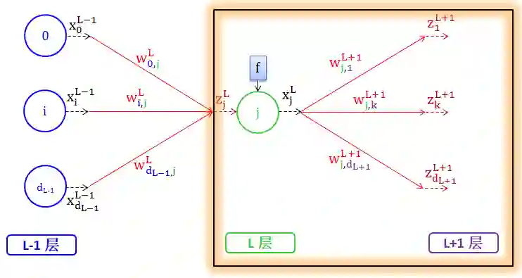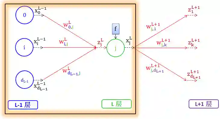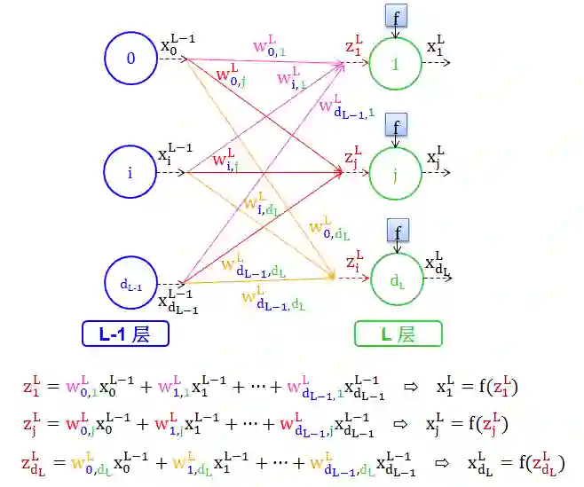 wLi,j 是权重,来自 L-1 层的节点 i,去向 L 层的节点 j