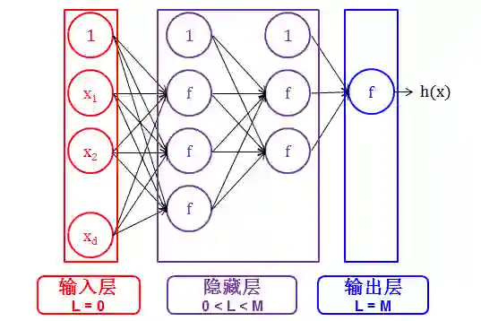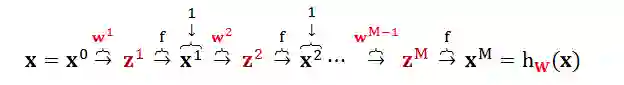 神经网络的每层用 L 表示,其中 L = 0, 1, 2, …, M.