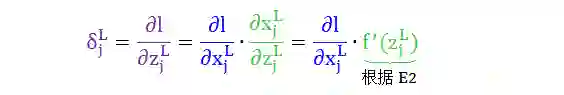 绿色下标 j 代表是权重走向第 L 层的节点 j