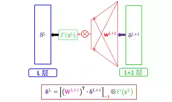 从 L+1 层到 L 层反向传播算法,其流程图如下: