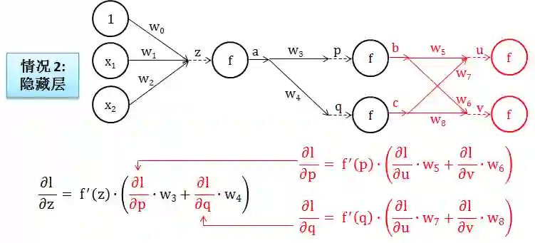 反向传播就是把权重当未知量从尾推到头得到偏导数
