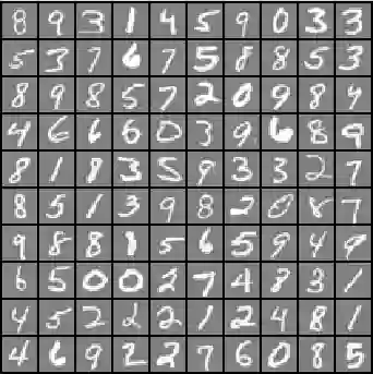 数据集有 5000 个示例,上图是随机打印出来其中的 100 个: