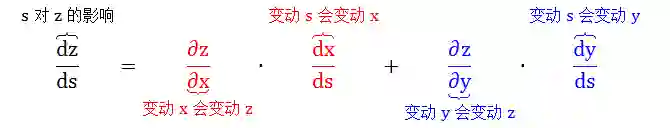 红色项已解决,再从紫色项敏感度定义开始,根据链式法则情况 1 则有公式 2