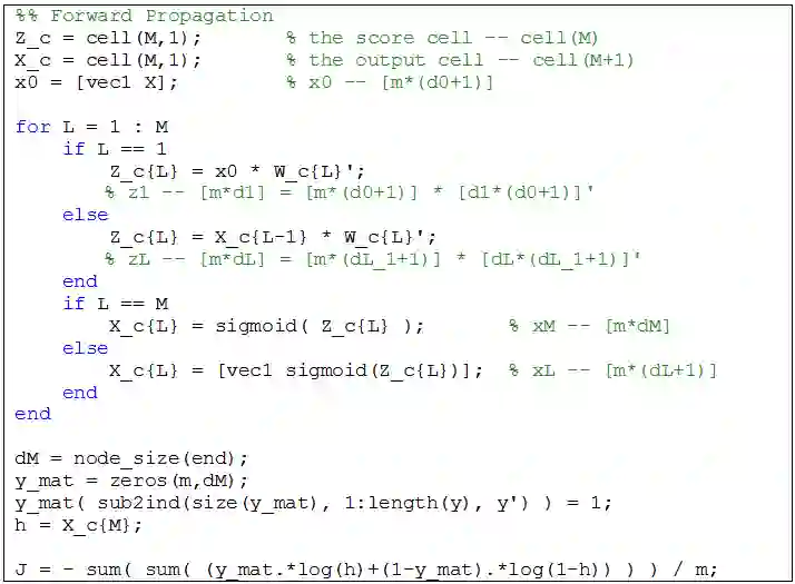 元胞数组的意思就是 W_c 有 n 个元素,每个元素都可以是一个大小不一的矩阵。完整代码如下:
