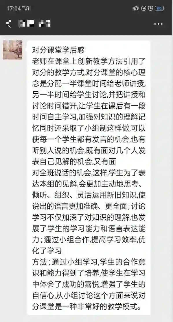 千百位教师开始都觉得对分没有什么出奇,直到深入了解、亲身体验之后,才体会到对分的独特魅力,觉得“如获至宝”、“相见恨晚”:(1)对分课堂简明易懂、好学易用。(2)对分课堂理工人文一样用,大班小班一样用,大中小学一样用,好班差班一样用。(3)对分课堂能让学生爱上学习,课堂不玩手机、不睡觉。(4)对分课堂能减轻教师的机械劳作,让教学变得轻松、愉快。(5)对分课堂能提升考试成绩,同时全面培养核心素养......