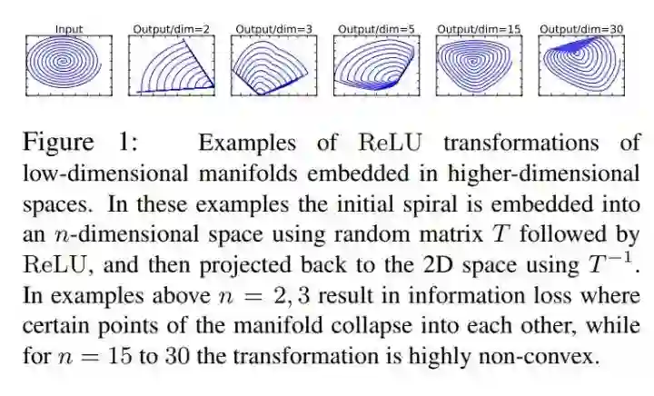 具体表现出来就是:若是我们对一个feature,先通过一个给定的变换规则T,将它映射到它的embedding space中,再在该embedding space中,利用一个ReLU去处理该feature,最后再把这个feature以同样的变换规则(逆方向)给映射回原始空间,我们会发现,这时,这个feature已经变得连亲妈都不认得了。如图↓