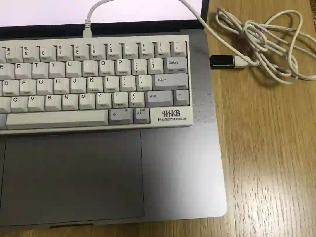 但和以上两点相比,我更不能接受的是需要搭配一根数据线 + USB 转 Type-C 的接口才能在 MacBook Pro 上使用的非蓝牙款 HHKB。