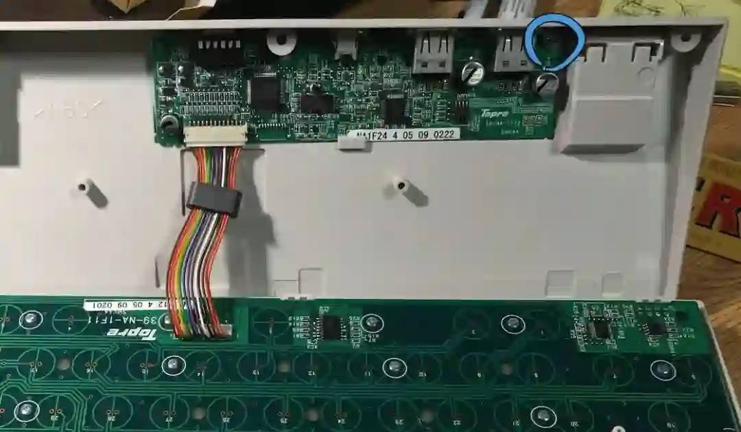 拆外壳,一共要卸四个螺丝,外壳三个,板子上一个(虽然它有两个孔,但的确只有一个螺丝,不用怀疑你的 HHKB 是偷工减料的)。
