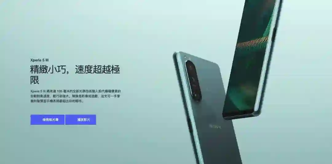 索尼 Xperia 5 III 采用 800 万像素前置摄像头,后置 1200 万像素(1/1.7",F1.7,OIS)主摄,1200 万像素潜望镜头以及 1200 万像素超广角镜头,拥有蔡司 T* 涂层。