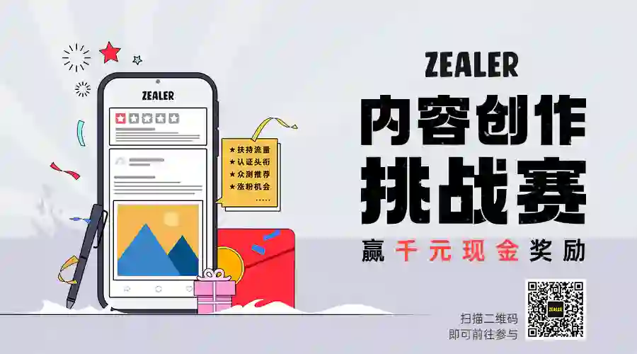 ZEALER 内容创作挑战赛重磅来袭!0 门槛不设限!超多奖品和福利!官网明星用户展示位、众测中选推荐机会、涨粉机会…统统都有