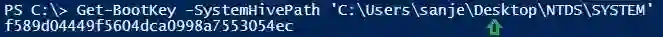 Get-Bootkey -SystemHivePath 'C:\Users\sanje\Desktop\NTDS\SYSTEM'
