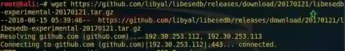 键入以下命令来下载libesedb库以安装esedbexport,然后解压tar文件。