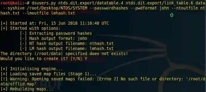 dsusers.py ntds.dit.export/datatable.4 ntds.dit.export/link_table.6 data --syshive /root/Desktop/NTDS/SYSTEM --passwordhashes --pwdformat john --ntoutfile nthash.txt --lmoutfile lmhash.txt