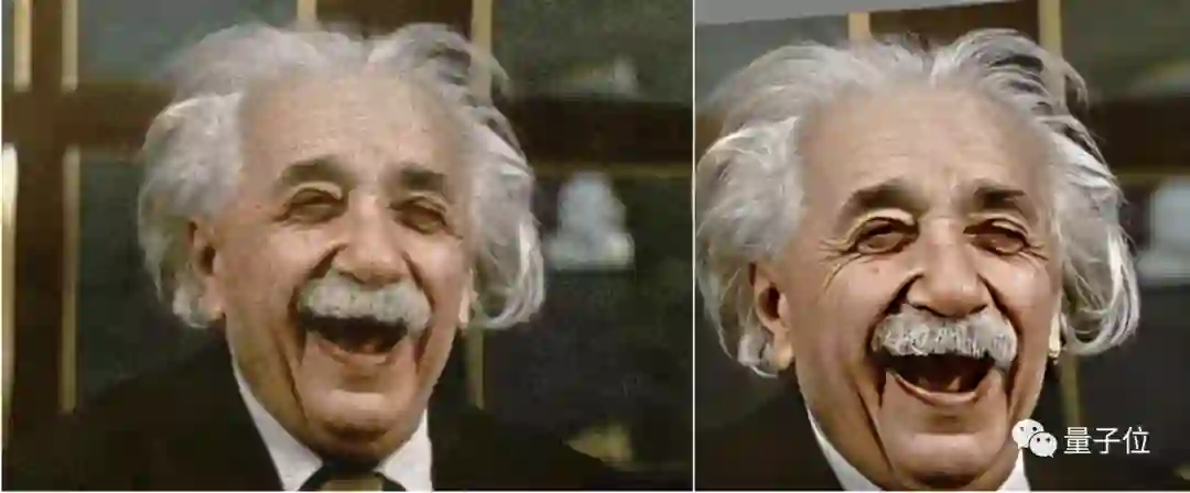 修复的爱因斯坦,笑起来时脸上的褶皱更加明显,头发丝、胡茬也都被还原了出来。