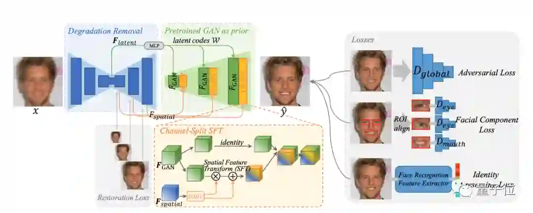 在保真度方面,研究人员引入了一个面部损失( Facial Component Loss),判断哪些细节需要提升保留,然后再用识别保留损失(Identity Preserving Loss)进行修复。