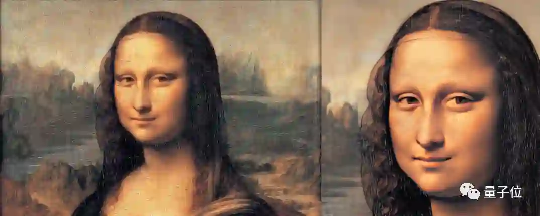 先来看看修复后的蒙娜丽莎女士,不仅面部的噪点都被去掉了,甚至连头发上的纱巾都清晰可见。