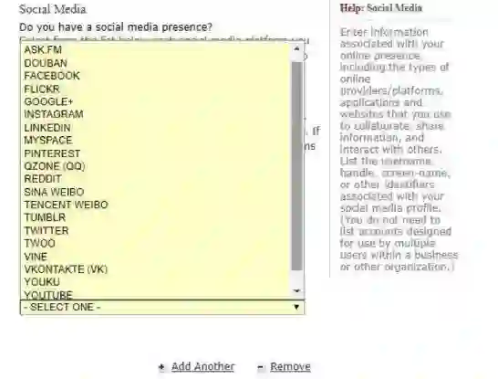 而上述提到的社交平台不仅包括QQ和微博账号,也包括境外流行的推特、脸书、油管等网站。国内的QQ空间、豆瓣、新浪微博、腾讯微博、以及优酷这5个网站,但并不包括微信和抖音等其他中国流行社交平台。