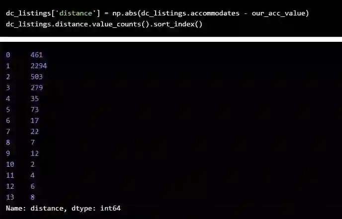 其中有461个房源的距离为0,因此可以容纳与我们的出租房屋相同的人数。这些房源可能是一个很好的开始点。