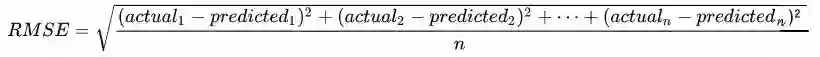 为此,我们可以取误差值平方的均值,即均方根误差(RMSE)。下面是RMSE的公式: