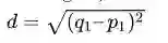 其中q1到qn表示一个观测值的特征值,p1到pn表示另一个观测值的特征值。